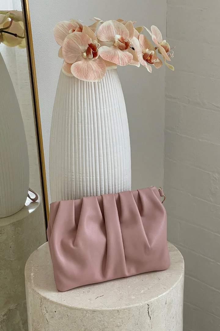 Introducing a one-of-a-kind accessory that will complete any look, our Tulisia Bag in rose pink! The crumpled design will surely turn heads whilst the removable clutch strap makes this a practical piece. Make an unforgettable entrance with a pastel toned floral dress and nude heels!