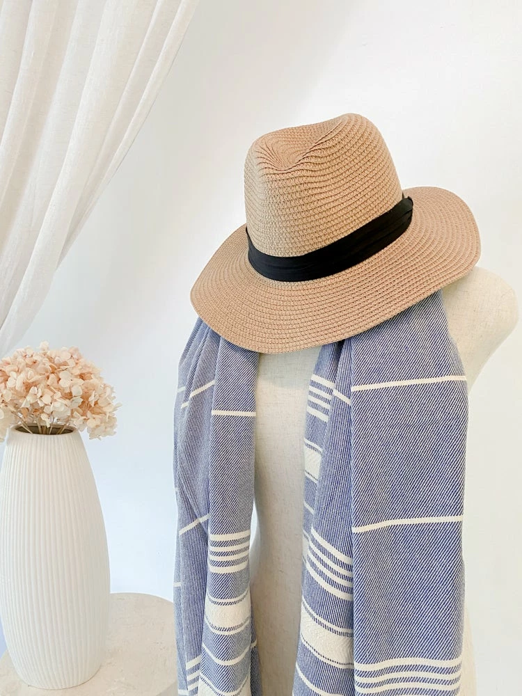 Protect yourself from the sun in style and feel fabulous! Our Mera Hat comes in a neutral color. This features a lightweight wide-brimmed straw hat is a perfect addition to your beach trappings! This beach hat is a wonderful keepsake that you will use again and again!