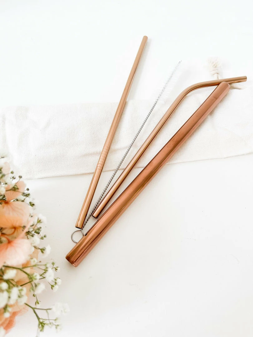 Our Metal straws come in a stunning rose gold, and are easy to store and clean as they come with a pouch with a special slim cleaning brush.