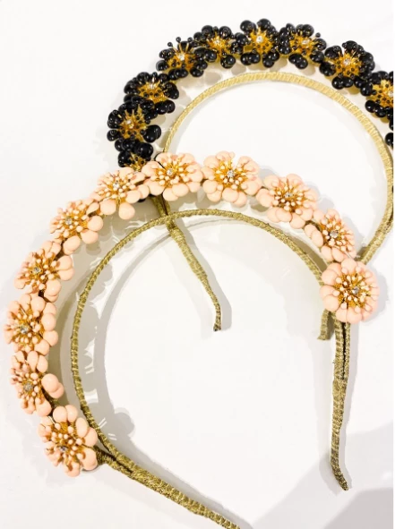 - Key Features: One size. Gold headband. Pink floral detailing.