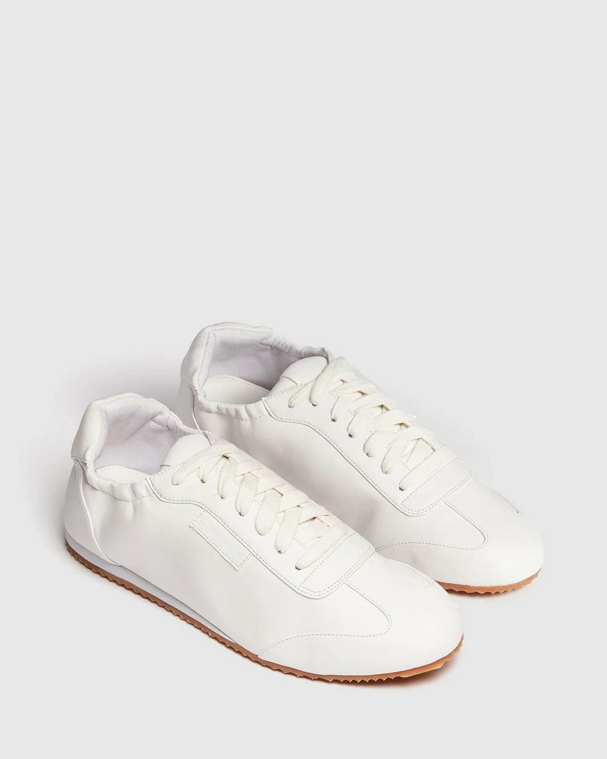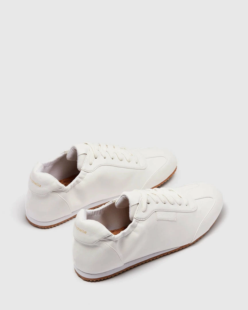 Introducing the first sneaker to the cherrichella collection. Say hello to ‘ASANA’. This low-profile women’s sneaker is the perfect style for the ultimate clean white sneaker. Made with a 1.5cm padded removable cork insole, these sneakers ooze comfy style. These super sleek sneakers have a padded heel collar, so you won’t need to break these babies in. Light weight and with a durable rubber sole, the Asana sneaker is your perfect travel sneaker. Wear them with a dress or with tights on your way to your next yoga class.