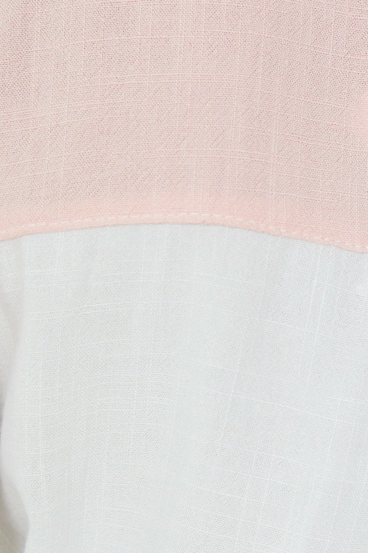 Our Blaine Dress comes in a blush and white tone color. This dress features a classic collar, v neckline, buttons down the front, and long sleeves. This feminine dress is beautifully vibrant and wears like a daydream!