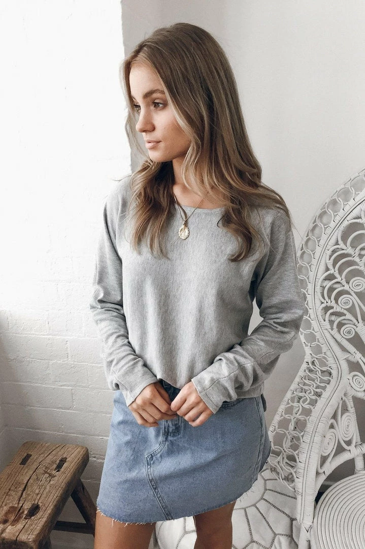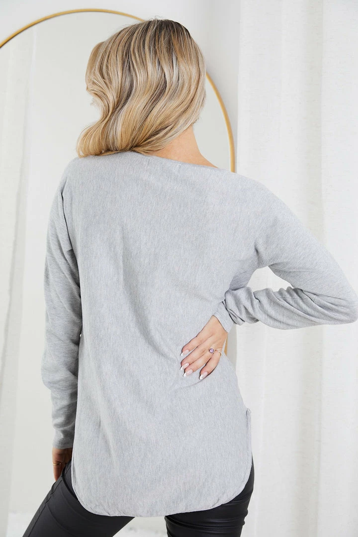Our Caterina Knit Jumper comes in an exquisite grey colour. Like a lullaby, this long sleeve jumper will make you feel relaxed and warm. It features a round neckline, curved hemline and a slightly stretch fabric you can pair with jeans and flats for an effortless laid back look.