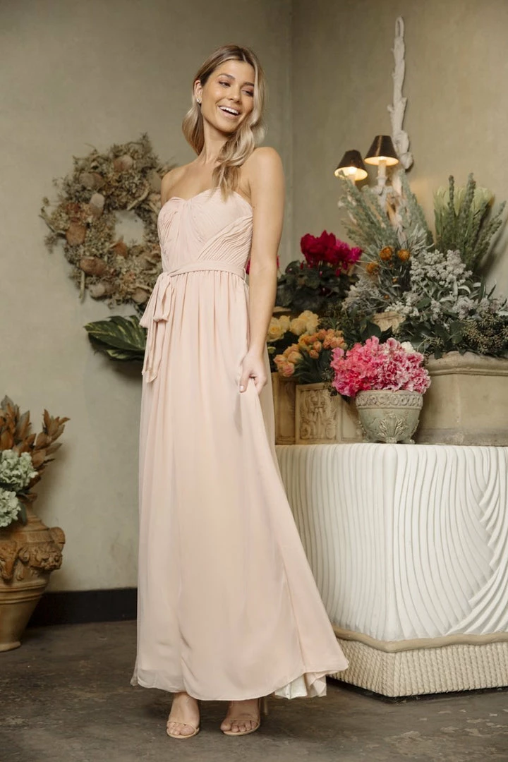 Our Dahlia Maxi Dress in Soft Peach is a bold, eye-catching, bridesmaid staple that lets your girls have all the fun.