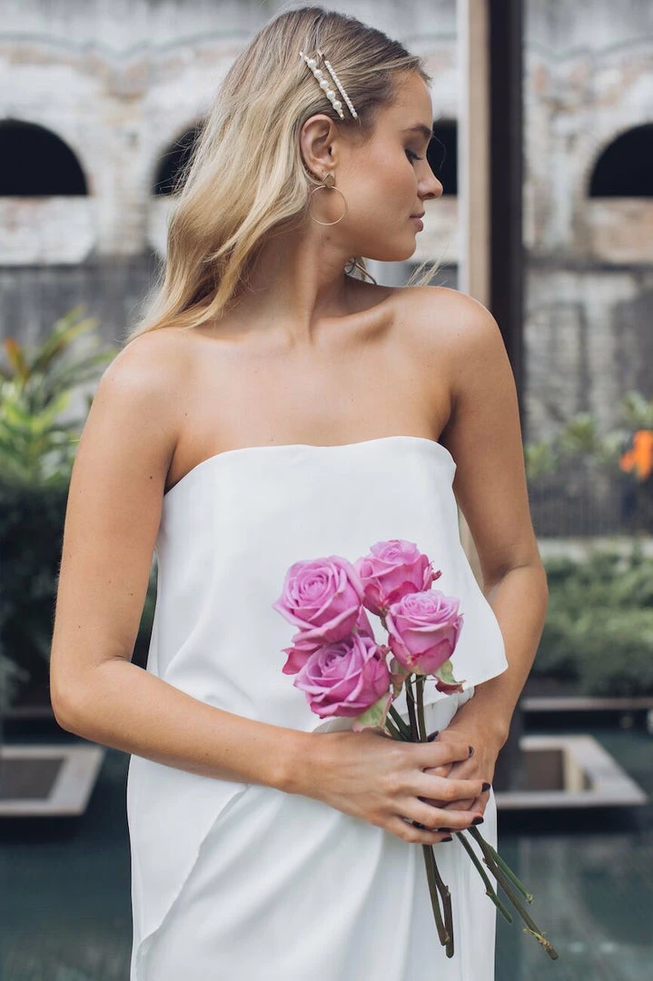 Our Fleur Strapless Dress in Ivory is a classic, feminine piece that will bring out the Greek Goddess in you.