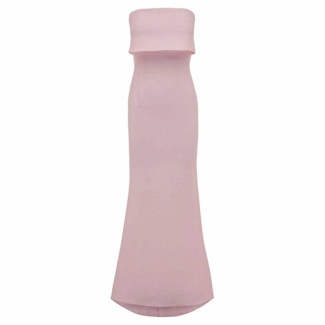 The beautiful fit elongates the figure, before paneling downward to create a simply stunning floor length gown. The colouring is soft, peachy and feminine, making any woman feel luxurious as she steps into this timeless piece.