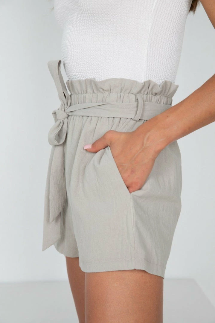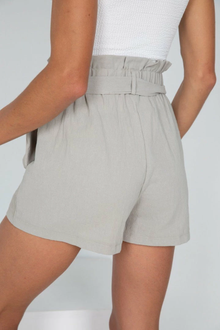 Our Detta Shorts come in an earthy sage tone. They feature a mini-length, an elasticated waistband, and a fabric waist tie. These shorts are perfect for the warm months of spring and summer!