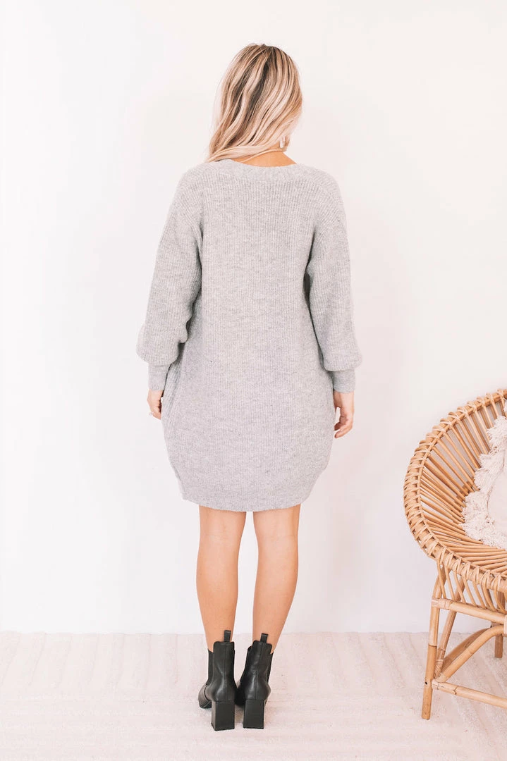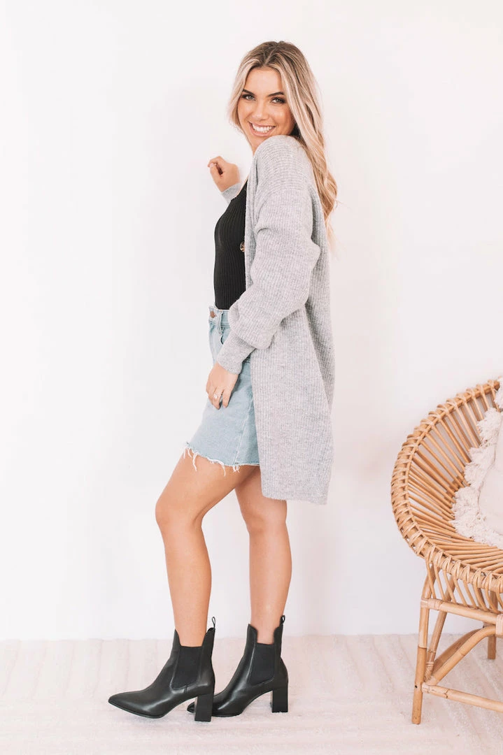 Our Liselotte Cardigan comes in a subtle grey tone. It features a v neckline, long relaxed sleeves, and button detailing down the front. This is the perfect outer layer during the colder months ahead!