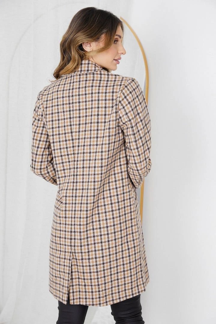 Our Magnoley Coat comes in a classy checkered print in tones of brown. Clean cut and a feminine dapper vibe, this double breasted coat features a notched collar, front buttons, side double welt pockets and knee length hem. Style yours with oxford shoes for a smart casual outfit!