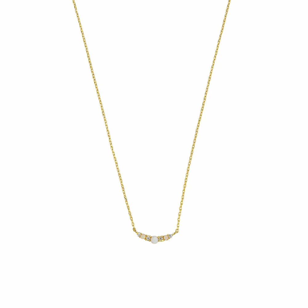 The Aisling Necklace features a curved piece with faux opals and crystals. A delicate style that you can wear day or night.