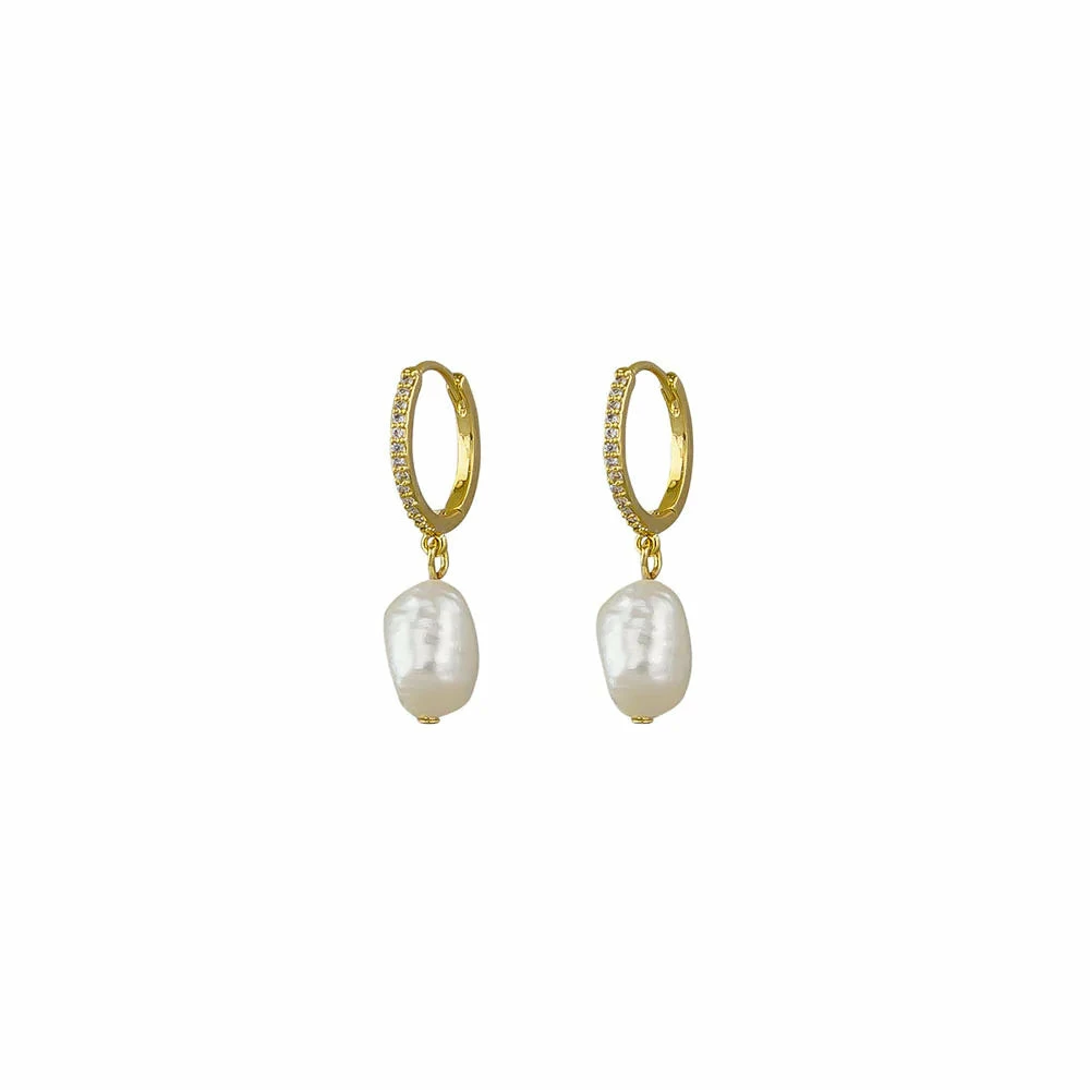 The Montana Earrings feature a swarovski hoop with hanging fresh water pearls. A feminine style that will elevate your weekend outfit.