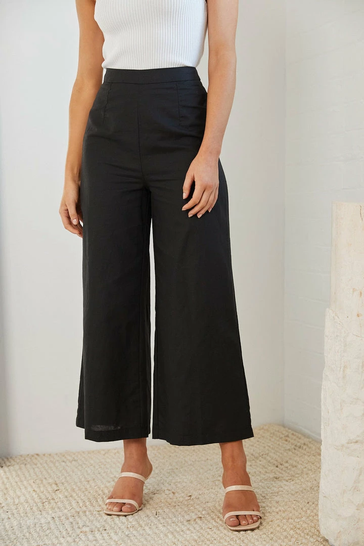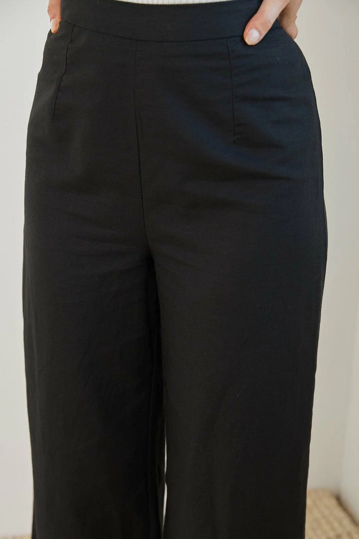 Our Xaranza Pants come in a gorgeous black colour. Looking on point has never been this easy with these ankle length pants that feature a wide leg fit that enables relaxed and easy movement. Team it with our Pickle Knit Top – White and white sneakers for a casual look or a long sleeved knit top and nude boots for a corporate outfit!