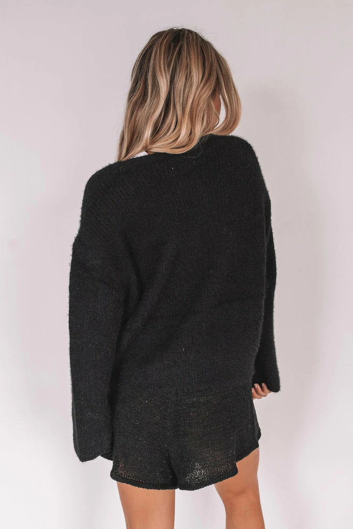 Our Pamina Cardigan comes in a classic black tone. It features a V neckline, buttons down the centre of the front, and long relaxed sleeves. This classic silhouette is the perfect layering piece for the cooler months to come!