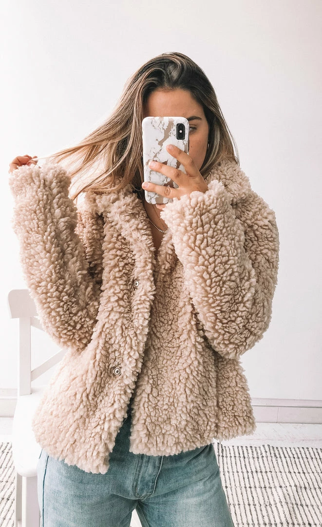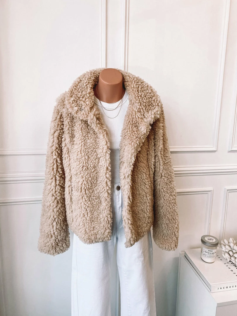 As comfy as it sounds! The Carebear Jacket is your next statement go-to item in your wardrobe. As soft as a Carebear, as sweet as you. The classic beige hue combined with the fabric texture makes this teddy jacket a perfect piece to dress up or down.