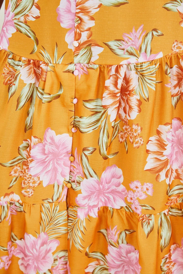 - Key Features: Midi length. Relaxed fit. Botton down the front. Tiered skirt. Flowy. Relaxed fit.