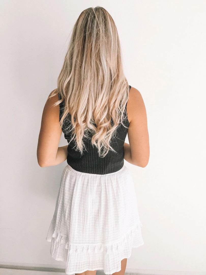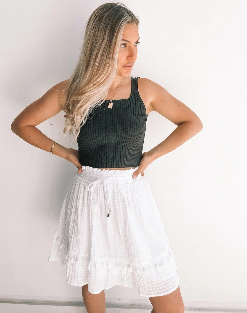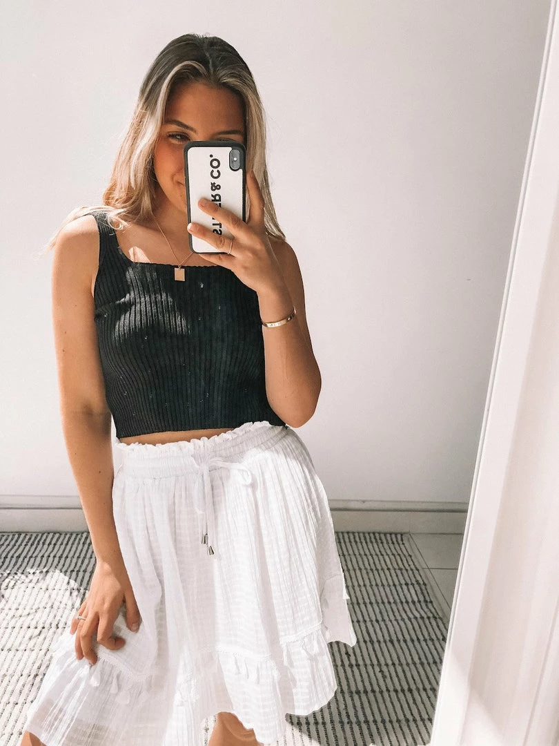 Our Foundry Top is a simplistic but essential wardrobe item. This black crop is comfortable + casual and can be paired with bright, bold and beautiful colours and patterns.