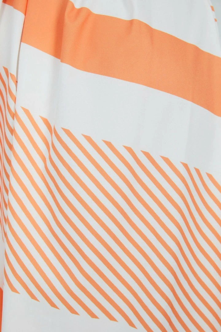 Our Dolores Dress comes in playful orange and white tone abstract print. This one-shoulder midi features an adjustable tie detailing on the wearer’s left shoulder. This stunning midi is the perfect way of adding a pop of colour to your wardrobe!