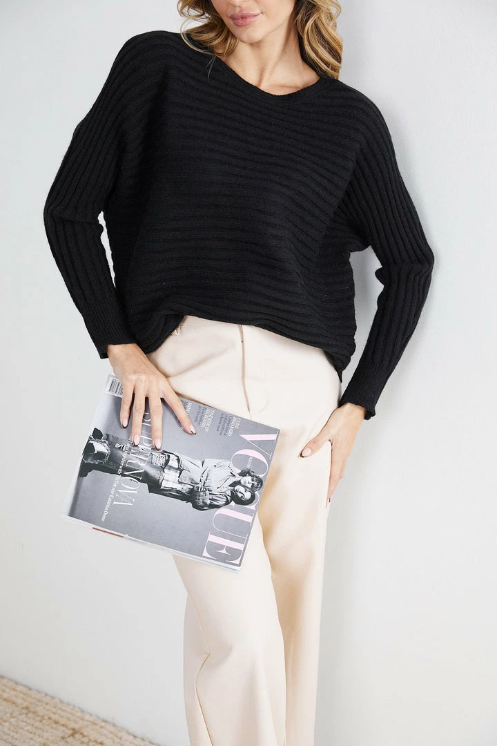 Our Caught Knit comes in a classy black colour. In the mood for a relaxing time away from work, this comfy jumper is the perfect buddy for lounging. It features a round neckline, long sleeves, curved hem and goes great with a cosy pair of pants!
