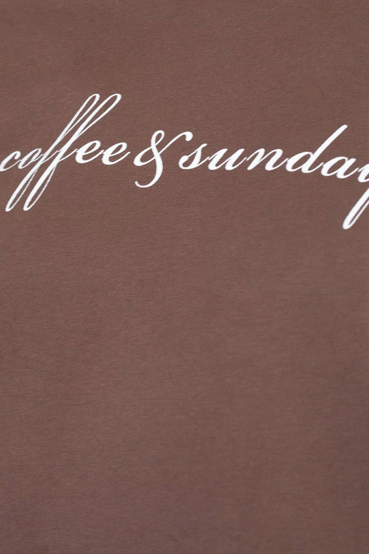 - Key Features: Pull-on style. Relaxed fit. Round neckline. Rib detailing on sleeves and hem. ‘coffee & sundays’ print.