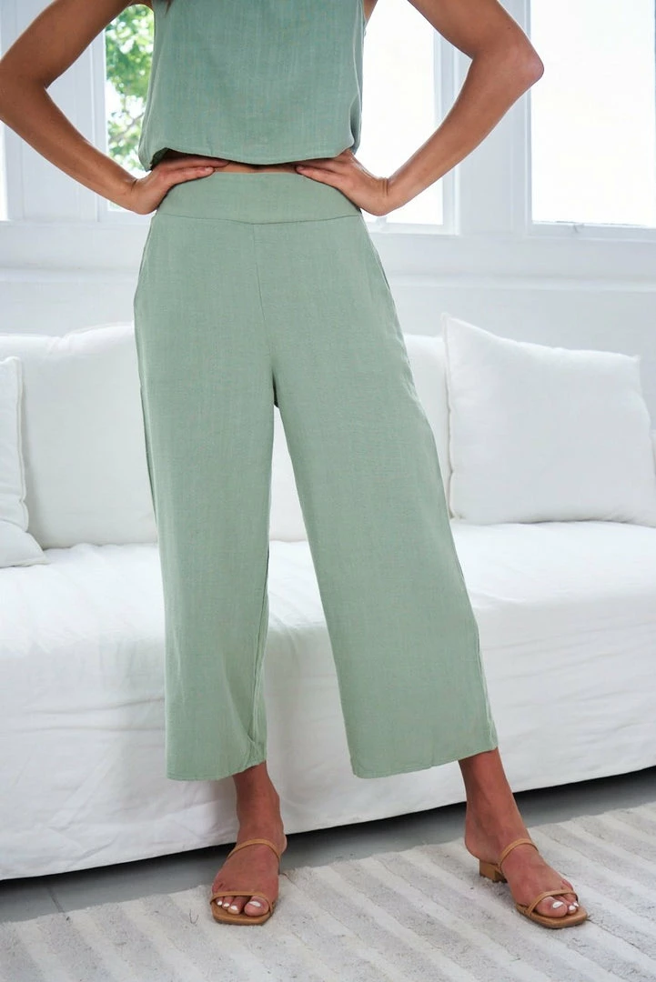 - Key Features: Light weight non-stretch fabric. Un-Lined (Semi-sheer, nude underwear recommended). Cropped wide leg. Flat front waistband, and elasticated at the back for comfort. Side pockets.