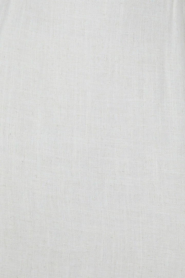 - Key Features: Midi length. V neckline. Classic collar. Fabric ties on the sides.