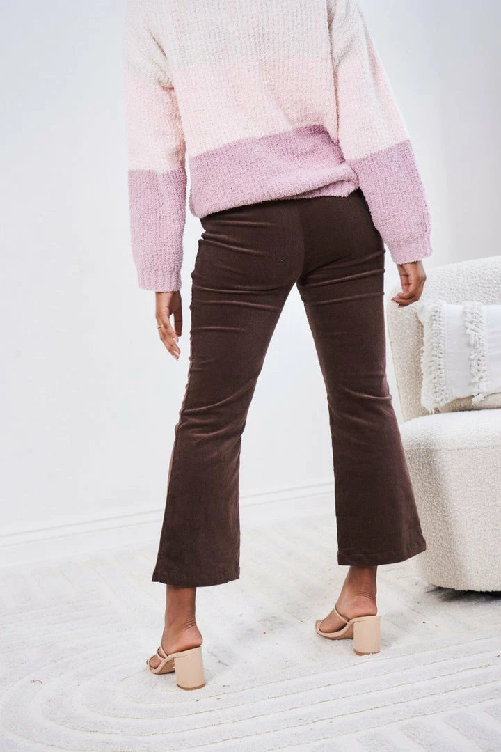 Our Nura Pants come in dark chocolate brown tone. The medium weight non-stretch fabric, with a straight fit is a classic model that will give a gorgeous line to your shape. With pockets on the front side and back, it is a must have for any wardrobe as easily matches with so many styles.