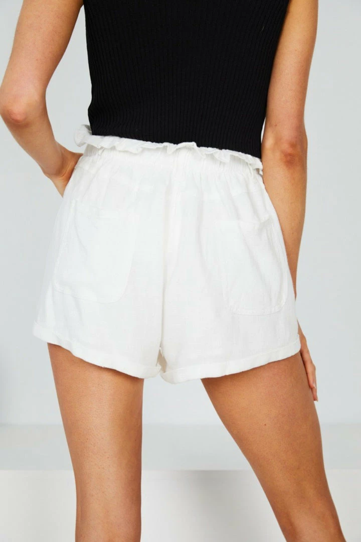 Our Tasha Shorts come in a fresh white tone and relaxed fit. These paper bag style high-waisted shorts feature a comfortable elasticated waist and buttons, belt loops, rolled hem, and pockets. This comfortable yet practical piece will become a summer staple in your wardrobe.
