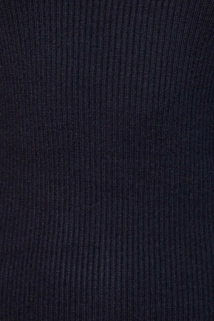Our Benedita Dress comes in a deep black tone. It features an off-the-shoulder neckline, long bishop sleeves and a contrasting rib knit pattern all over the garment. This cute midi is the perfect formal piece for cold winter evenings!