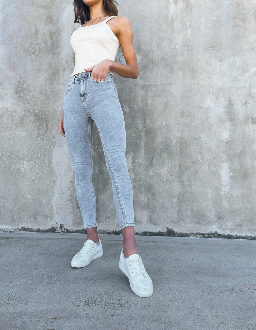 Our Alvena Jeans come in a light blue wash. They are a high waisted, slim leg fit, which is a classic model that will give a gorgeous line to your shape. With pockets on the front side and back, it is a must-have for any wardrobe and easily matches with so many styles.