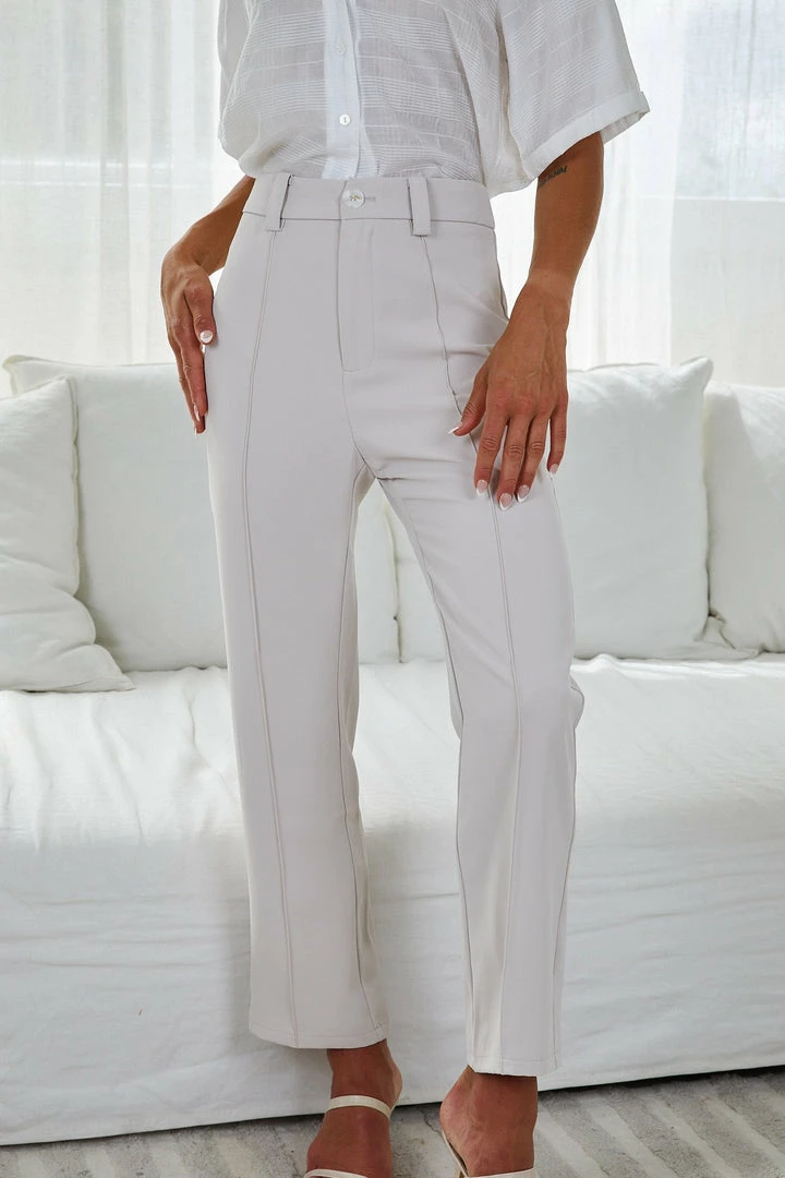 Our Ramiel Pants come in a taupe tone color. These relaxed high-waisted pants feature a zipper on the front center, pockets, and a wide-leg silhouette. These classy pants are perfect for the office and can be dressed up for drinks after work.
