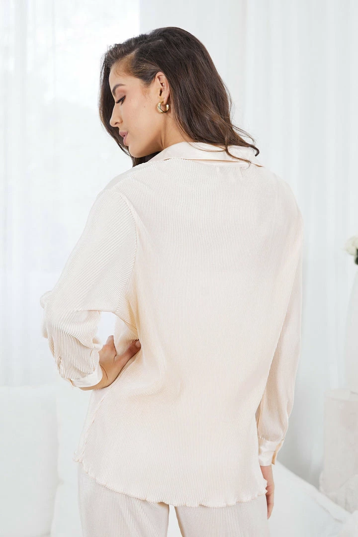 Our Rachey Shirt comes in a gorgeous champagne colour. Not your ordinary everyday piece, this classic staple has been elevated through its light & fun fabric and features a shirt collar, cuffed long sleeves and functional mid front buttons. Finish your look with our Rachey Pants – Champagne.