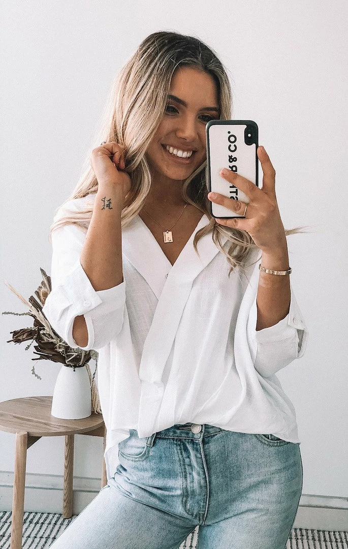 Our Plato Top is your next fave white shirt featuring a twist hemline with a structured collar & relaxed 3/4 sleeves. Pair with your fave denim & gold jewellery for an effortless outfit.