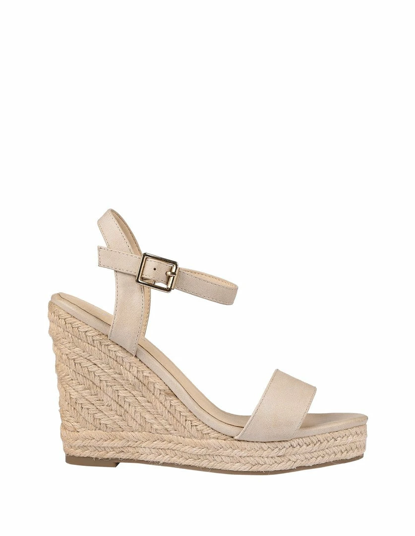 Your go-to staple this summer! Simple style wedge with woven wedge detail, open heel counter and ankle strap with adjustable buckle fastening. This wedge is cute, comfortable and will effortlessly take you from day to night!