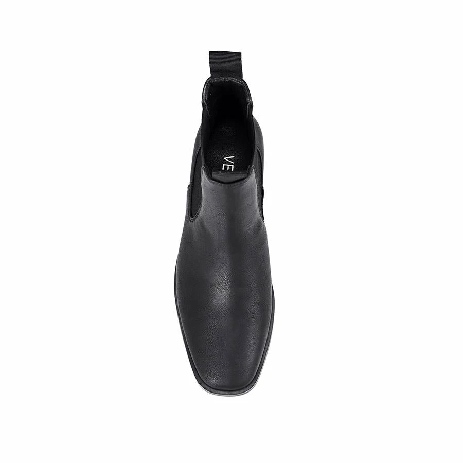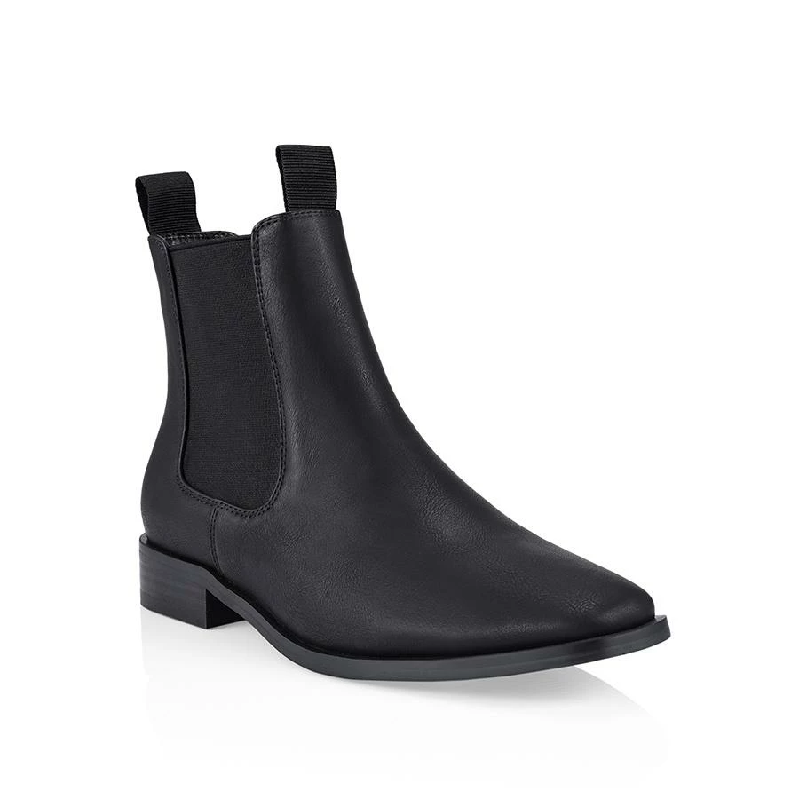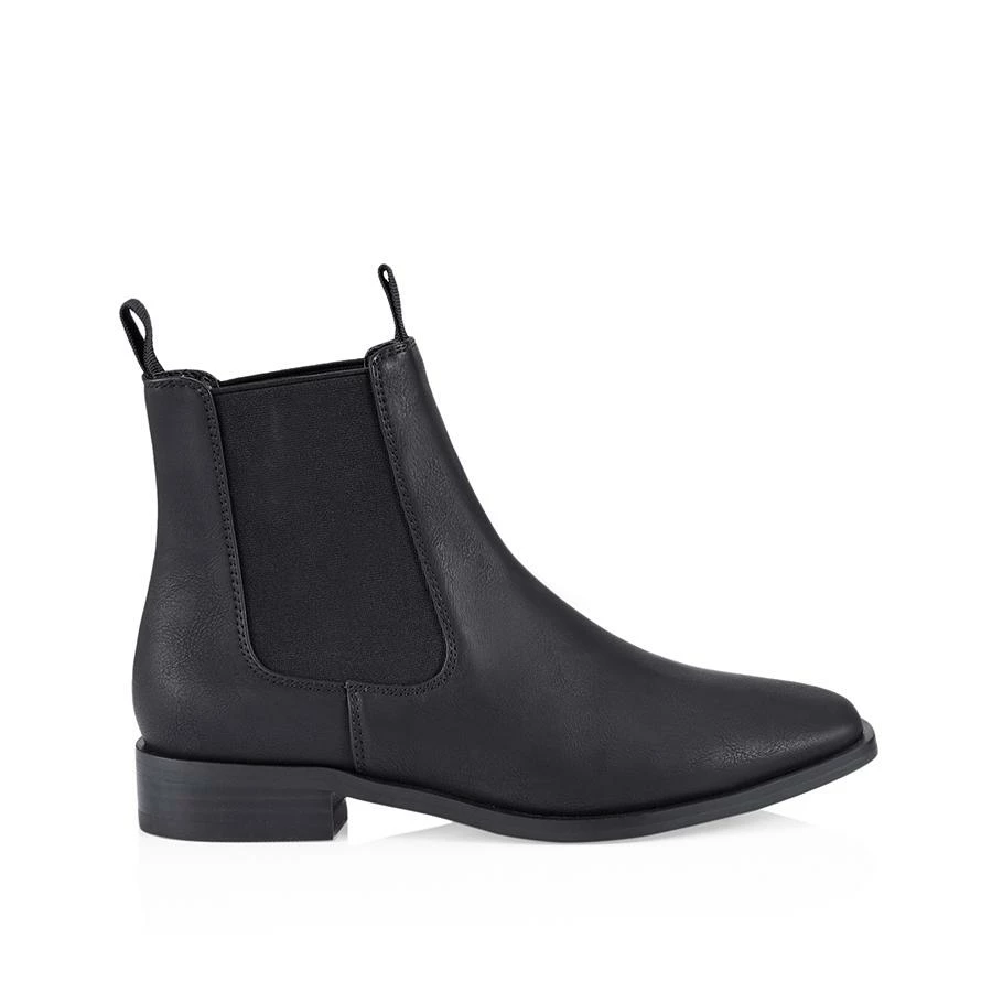Our Harper Boots by Verali come in a deep black tone. The Harper boot is a simple yet chic flat ankle boot. It has a pull tab at the front and back for easy access and remove. A year round wardrobe staple.