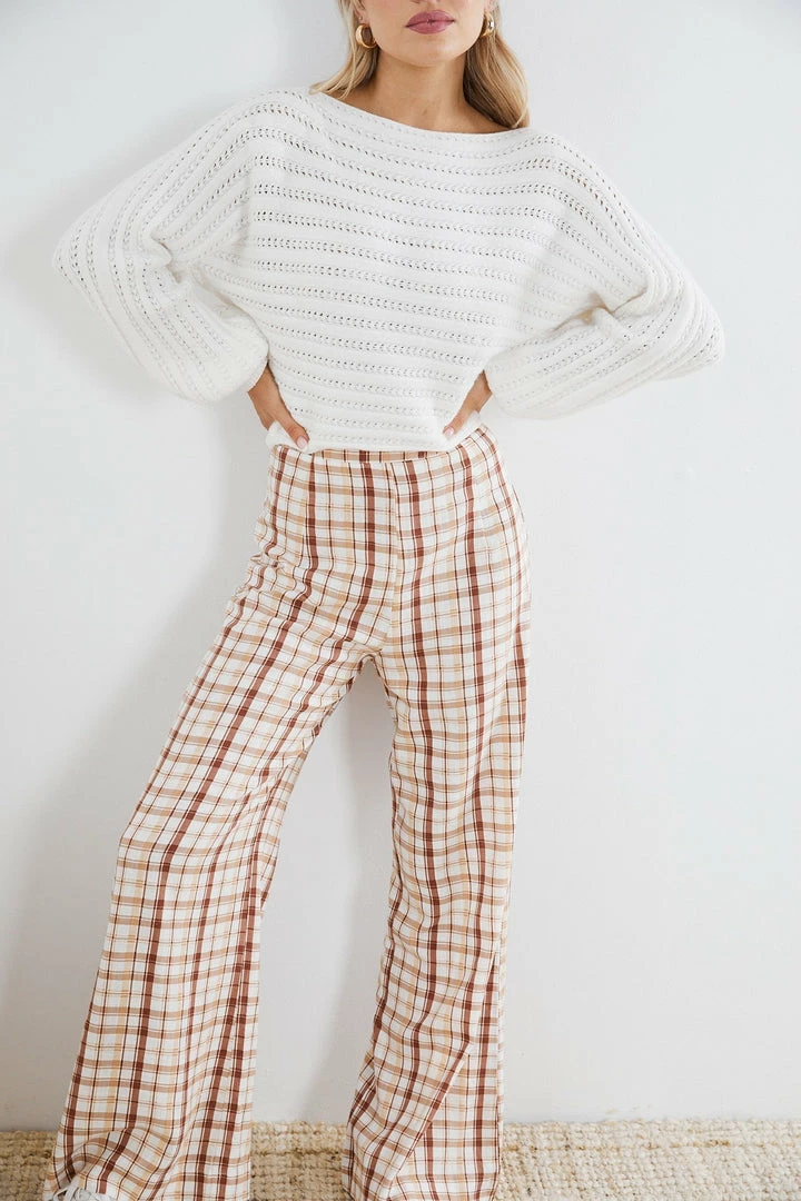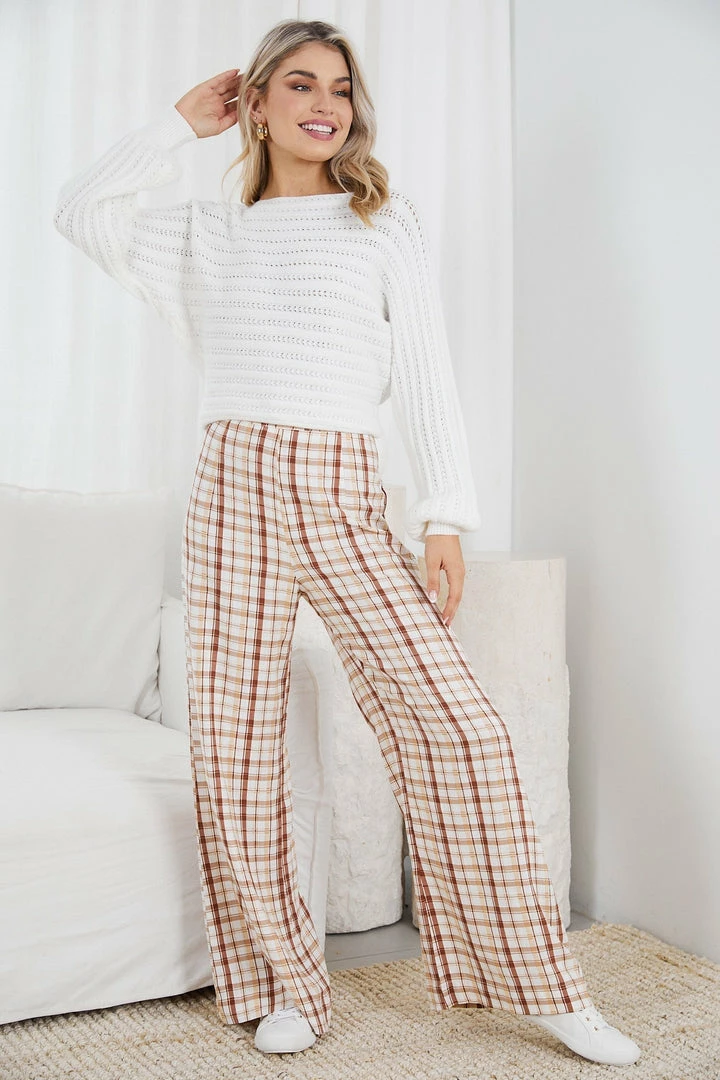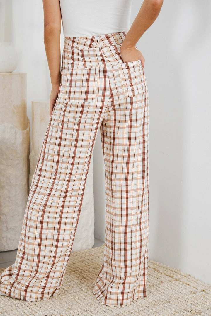 Our Bee Pants come in a lovely beige tone base with brown check prints. These relaxed high-waisted culotte-style pants are perfect for any weather and pair beautifully with any basic top!