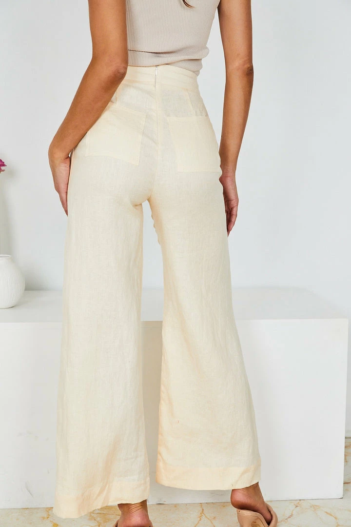 Our Selda Pants are a fresh butter yellow tone. This is sure to be a fave casual pant of yours that can be dressed up with a strappy heel or dressed down with sneakers. The wide leg trousers are a must in your wardrobe!
