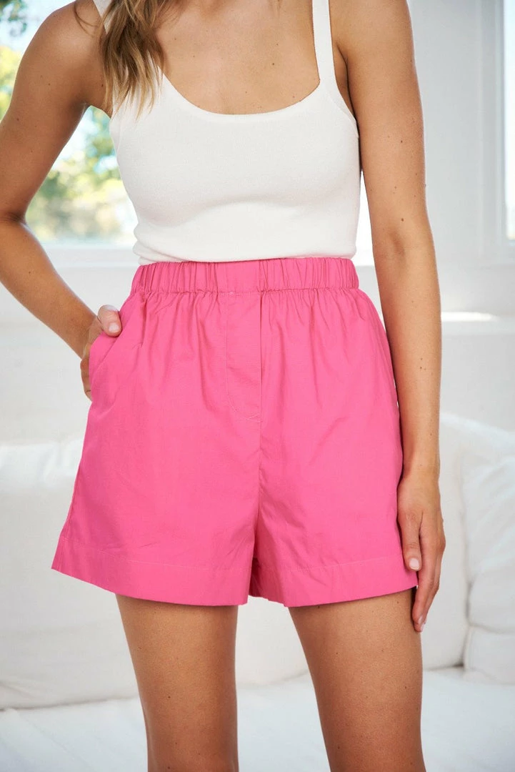 Our Lizzie Set comes in a hot pink tone. This beautiful set consists of a long sleeve, button down shirt, and the perfect mini-length shorts for pairing. This set is sure to keep you cool and fabulous during the warm summer months!