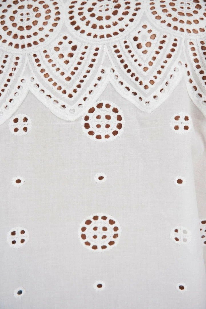 Our Jaden Top comes in a fresh white tone. It features a gathered neckline, long sleeves, & an embroidered pattern all over the garment. This top pairs beautifully with basic pants for a fun casual look!