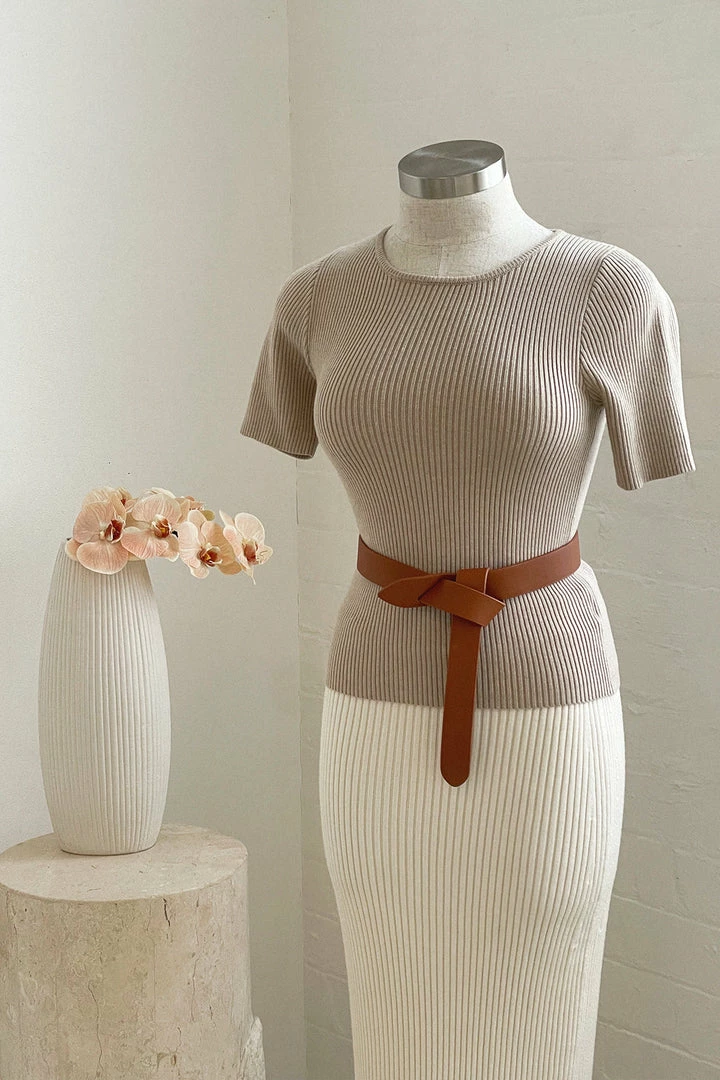 Our Pax Belt comes in a classic tan tone. This accessory will cinch in the figure and elevate all your outfits.
