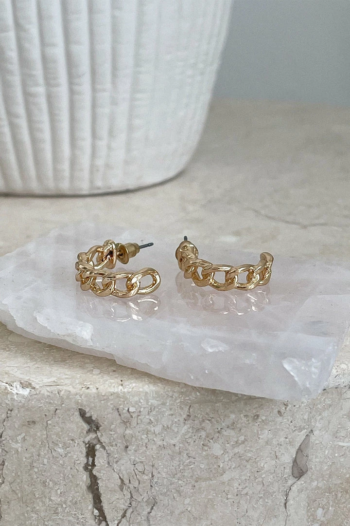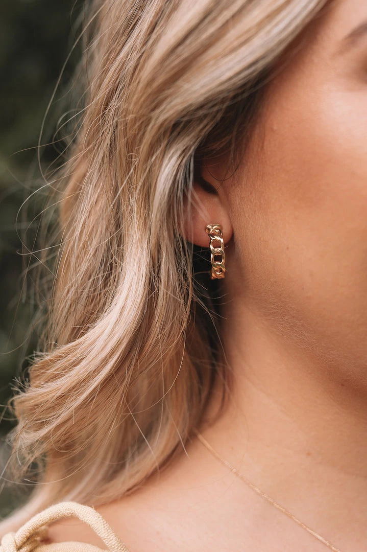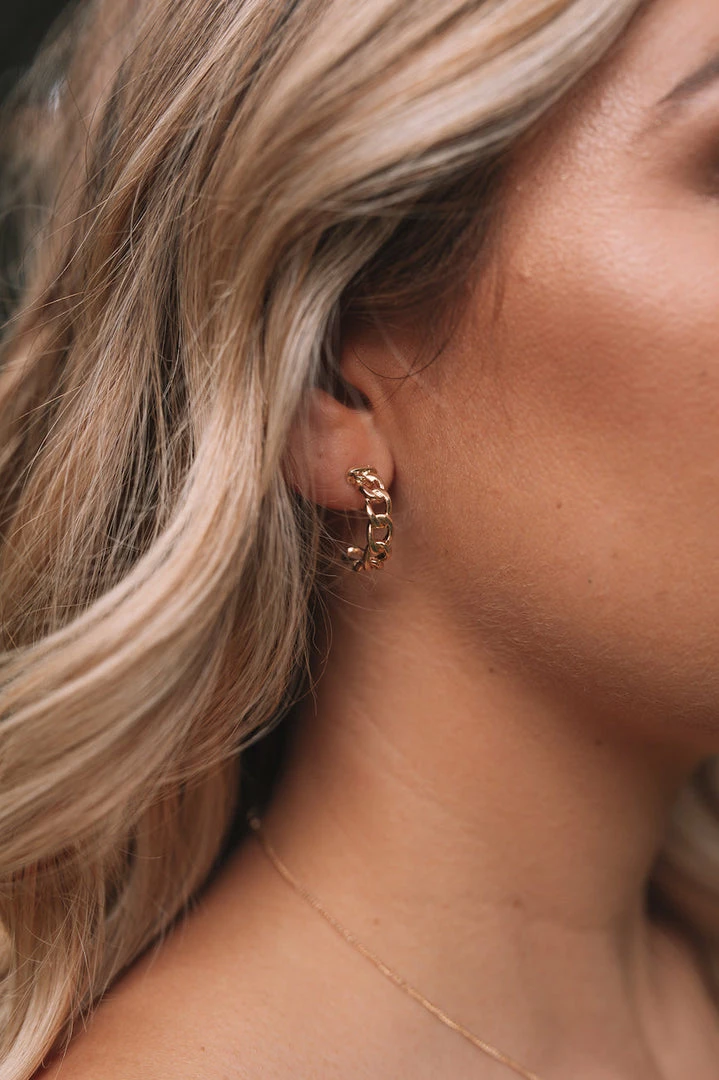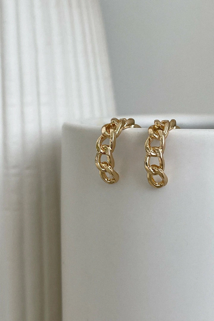 Our Ray Hoop Earrings comes in a stunning gold-tone. The interlinked chain style is a simple but subtly fierce design that is sure to elevate any outfit.